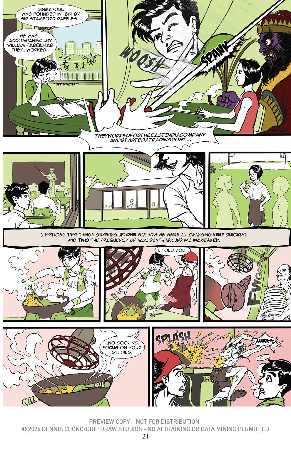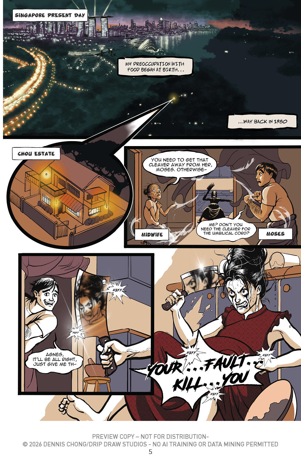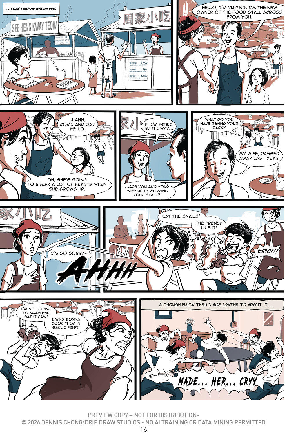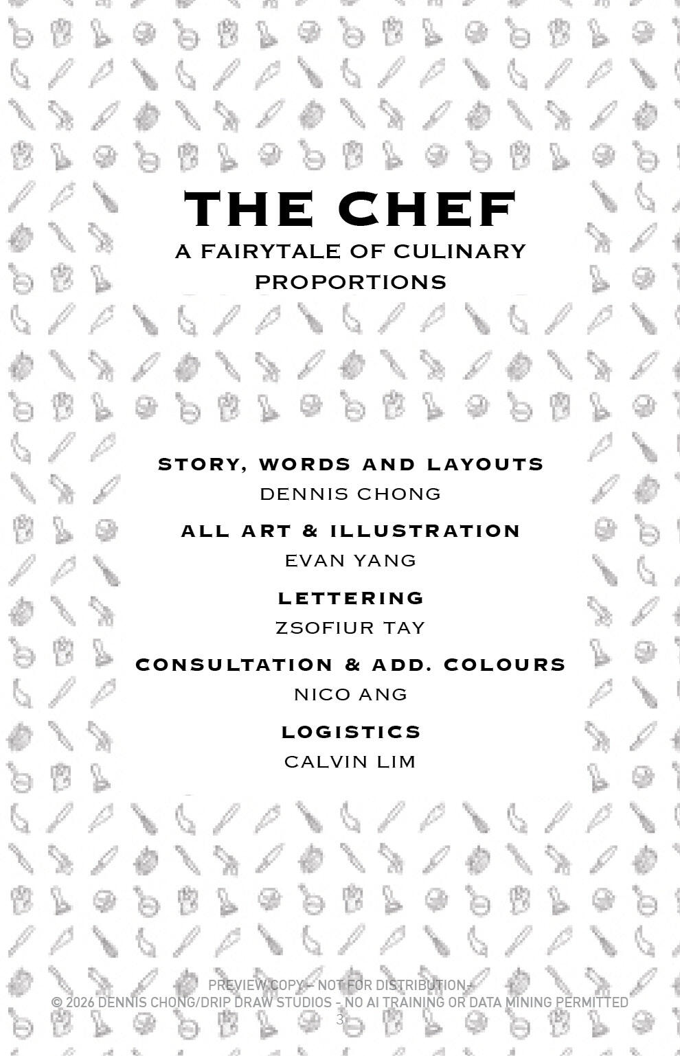 EVAN YANG is an artist born and bred in sunny Singapore, with a decade’s worth of freelance experience under his nonexistent belt (since he wears ‘ezy’ jeans all the time). Evan is responsible for all the art in ‘The Chef’. He is a rarely-seen creature; kinda like a unicorn, and when spotted in public is recognized by his all-black outfit, his beard, grumpy demeanour and wild hair. When found, he’s usually in the midst of wolfing down a plate of ‘Char Kway Teow’. Remnants of which can be found in his beard on occasion.