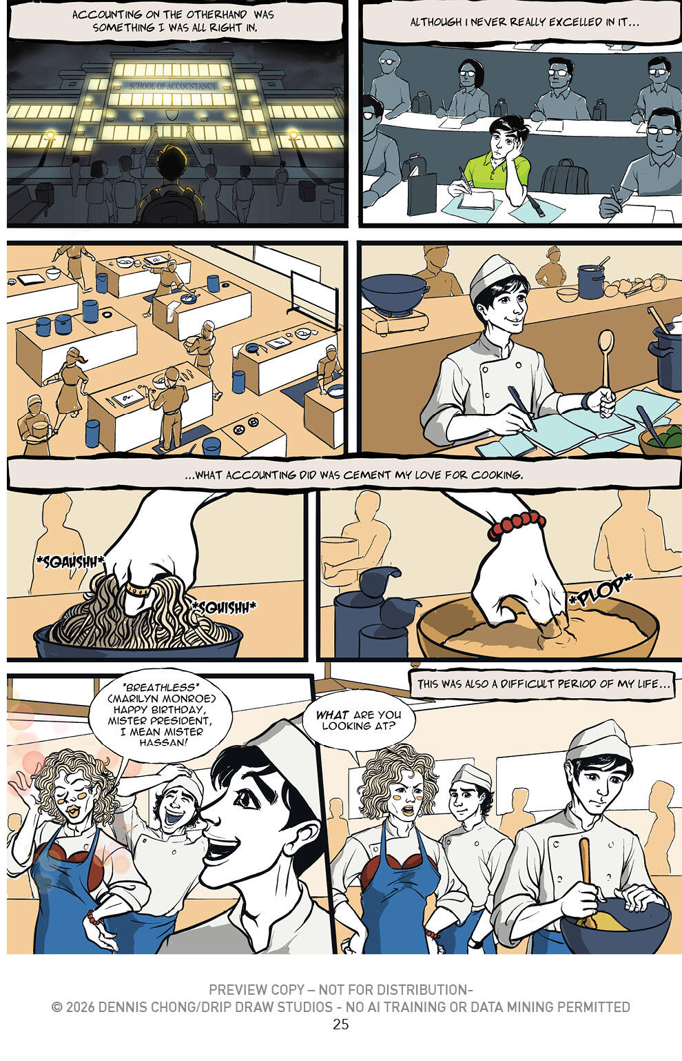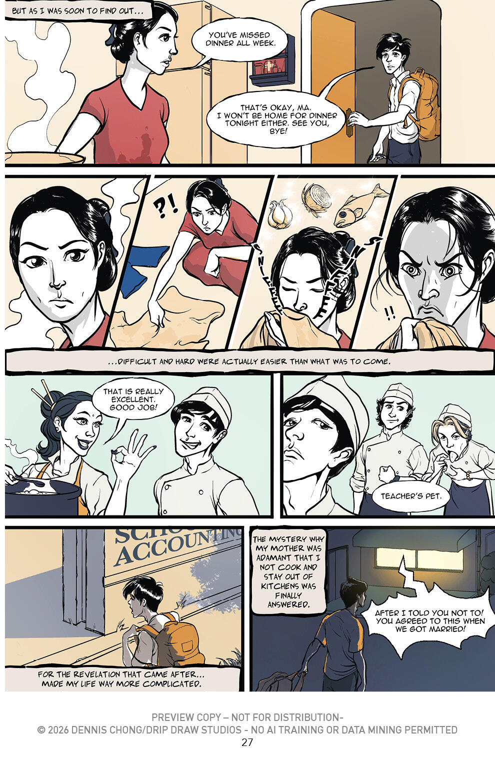 NICO ANG is a conceptual artist of sublime talent who’s taken to illustration like a duck to water. Throughout the 2 year process of getting ‘The Chef’ completed she has consulted, guided, poked, and at times harangued the creators about making the graphic novel better. A force of nature and a dynamo that keeps the rest of us on our creative toes, always. She has helped Evan with the Shading and now works on her own book which can be found at: dripdrawstudios.com.