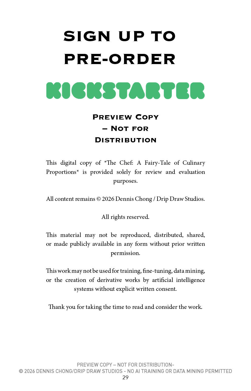 Please note:1) All support goes directly into funding The Chef (like printing, production, and marketing).2) Because your contribution will support our work, it is not considered a charitable donation and is therefore not tax-deductible or refundable.3) Contributions do not give ownership, shares, or profit rights in our company.4) Support is non-refundable, unless required by law.5) We’ll do our best to keep you updated on our progress — but contributions don’t guarantee a product or reward unless clearly stated.By contributing, you’re helping us bring our stories to life. Thank you for being part of the journey!